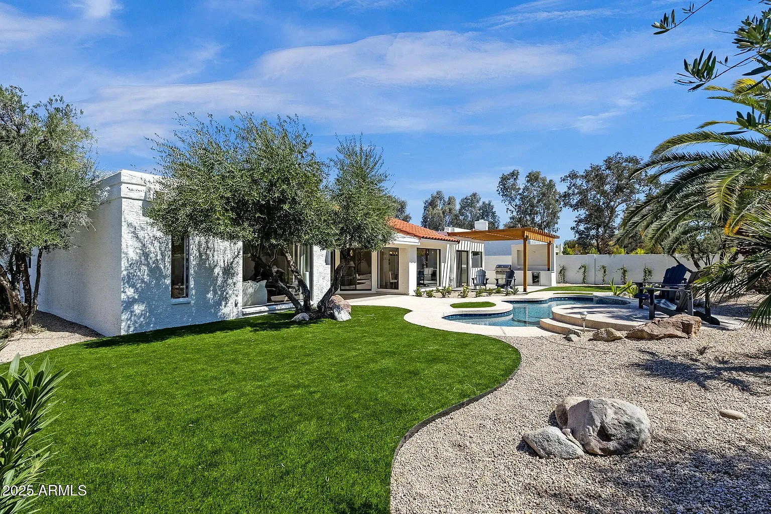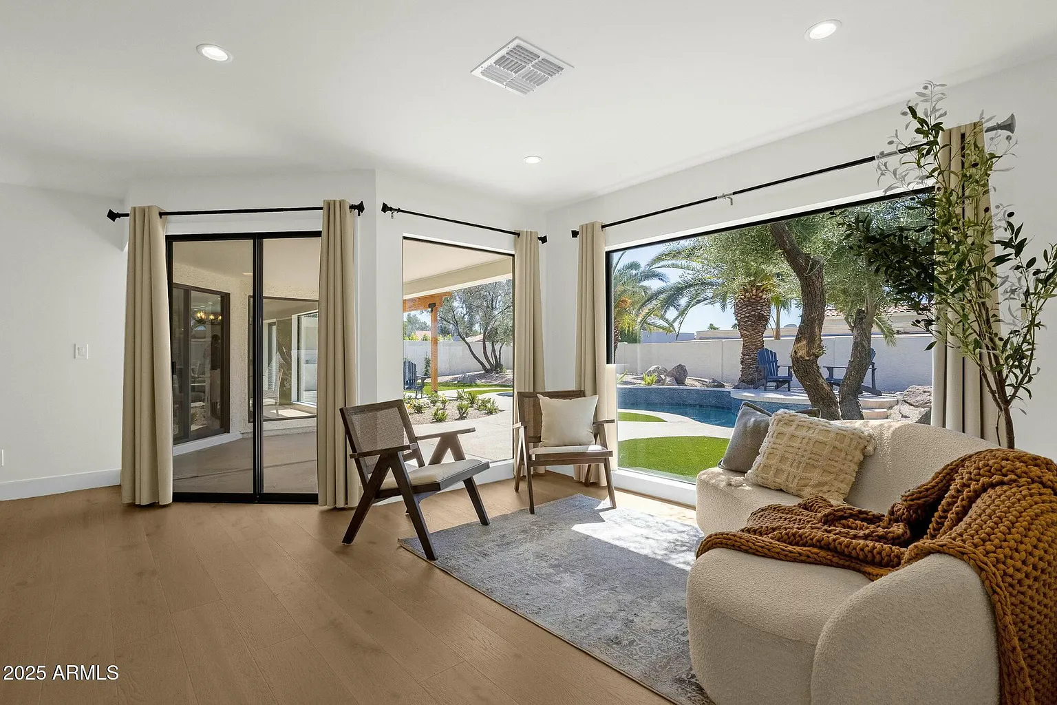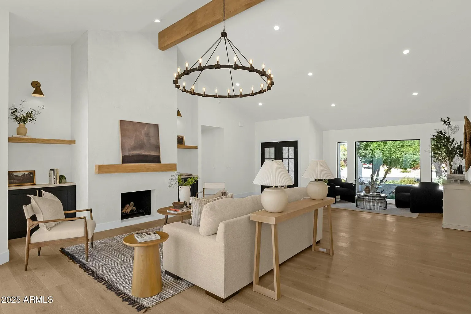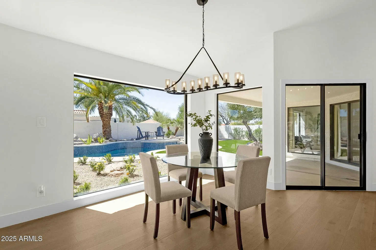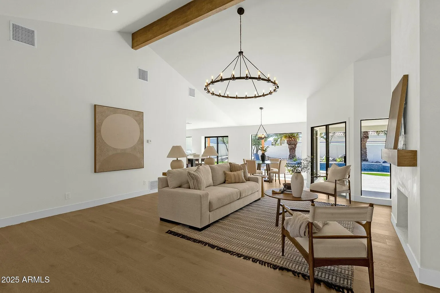 A timeless Scottsdale ranch brought back to life with a fresh, transitional design that blends rustic warmth and modern sophistication. Soaring ceilings with exposed beams, wide-plank oak floors, and thoughtfully layered lighting give the interior a bright yet grounded atmosphere. The living spaces are open and airy, flowing effortlessly into a beautifully landscaped backyard retreat complete with a resort- style pool and spa.