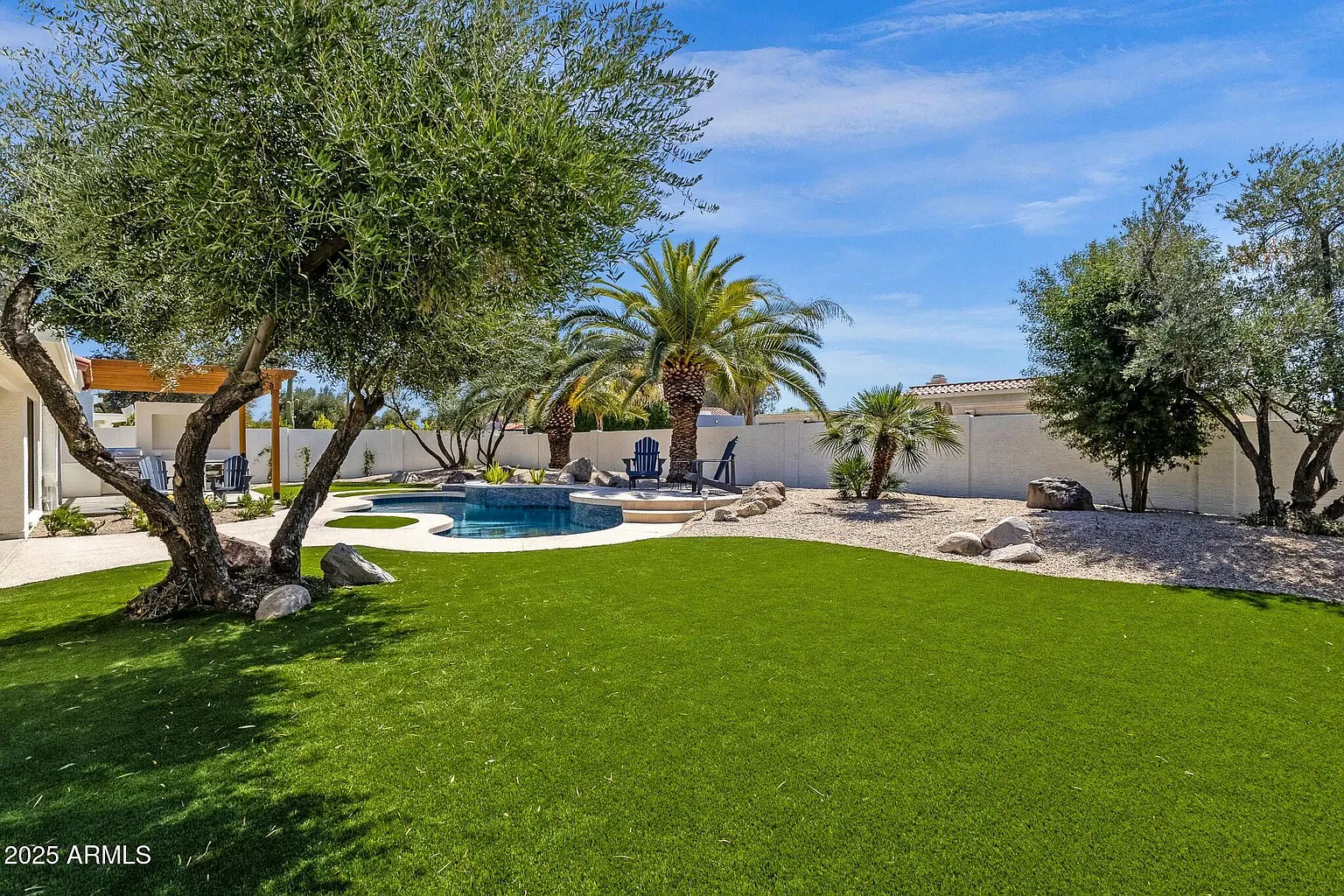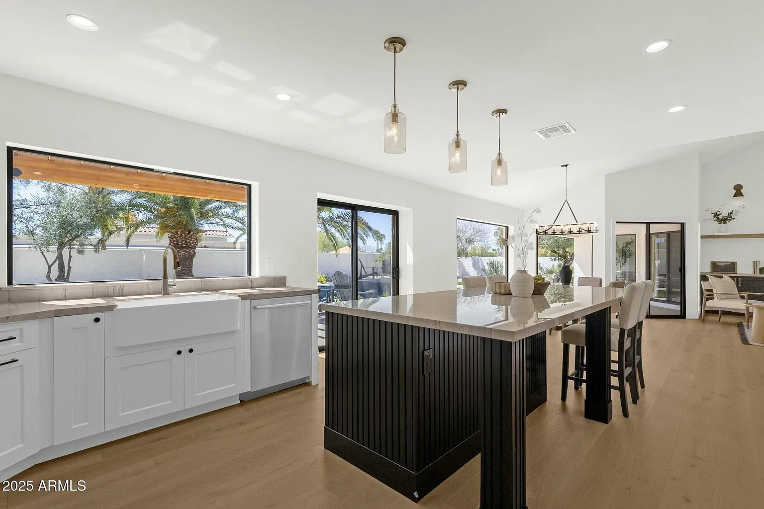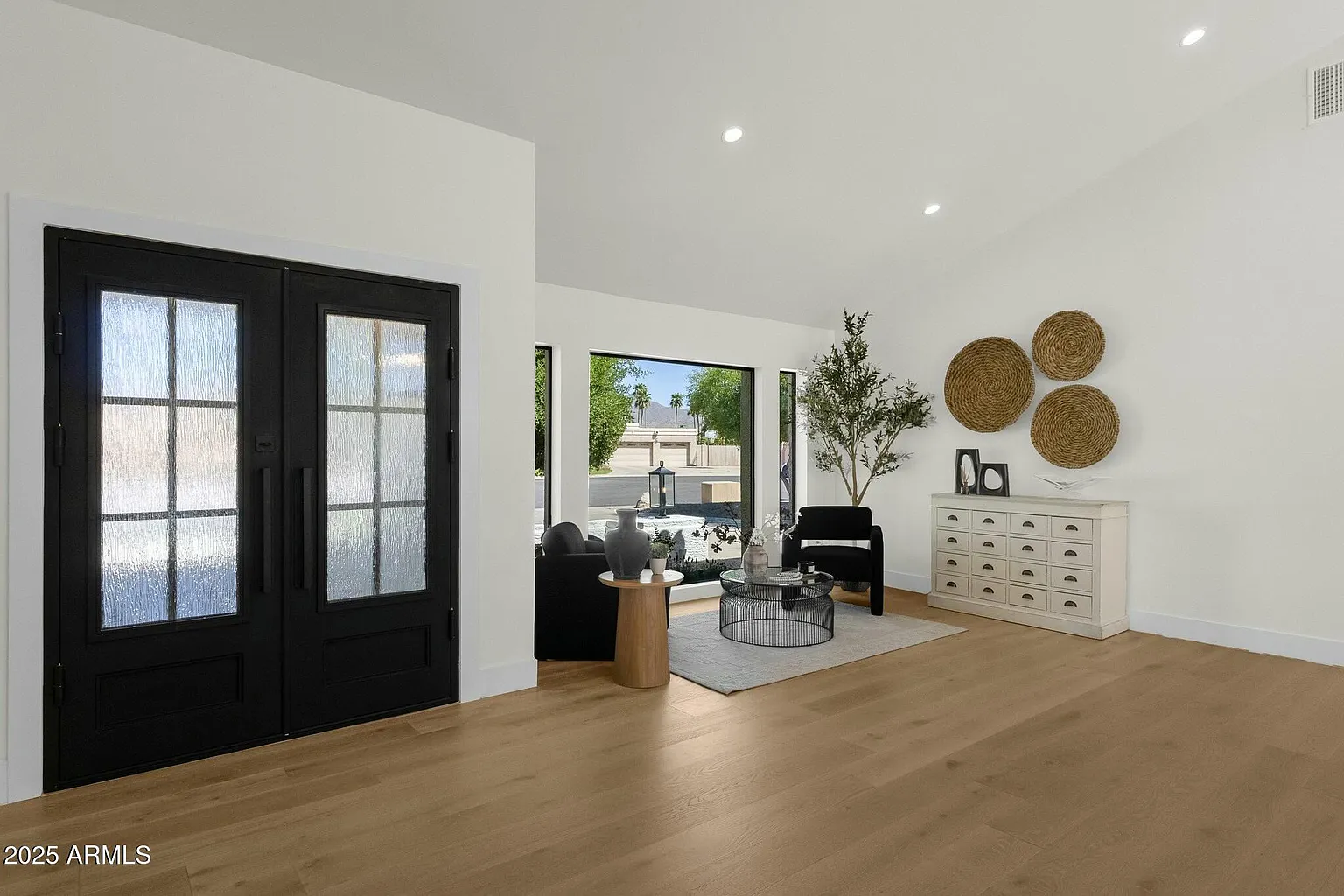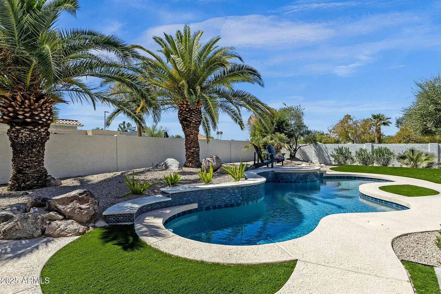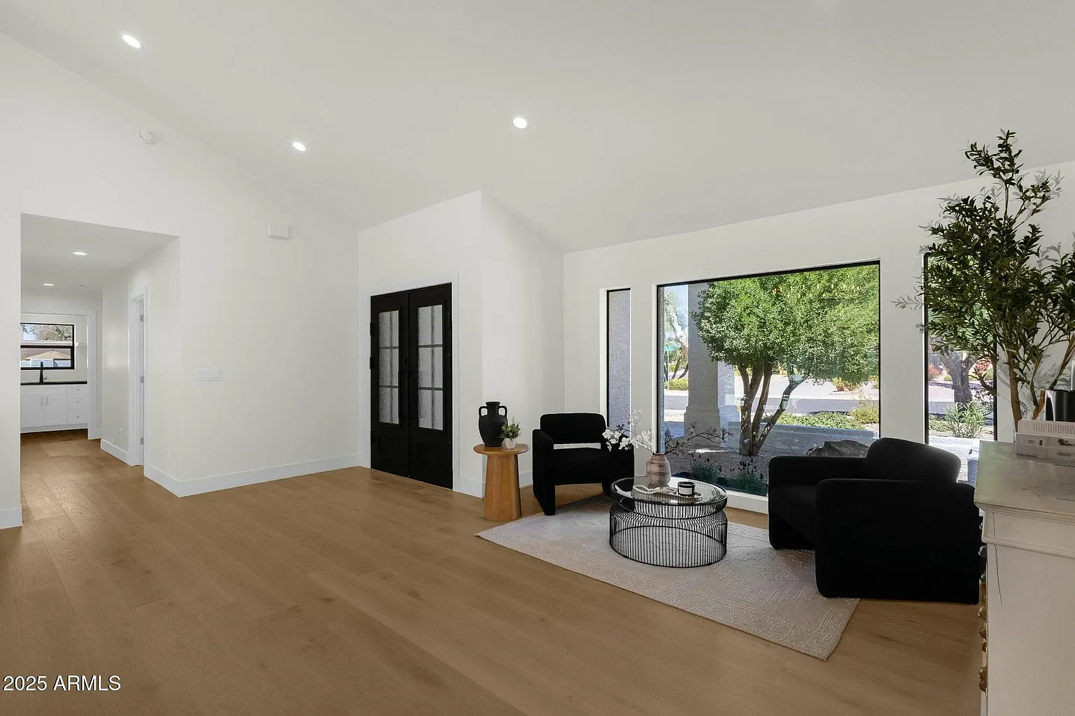 A timeless Scottsdale ranch brought back to life with a fresh, transitional design that blends rustic warmth and modern sophistication. Soaring ceilings with exposed beams, wide-plank oak floors, and thoughtfully layered lighting give the interior a bright yet grounded atmosphere. The living spaces are open and airy, flowing effortlessly into a beautifully landscaped backyard retreat complete with a resort- style pool and spa.