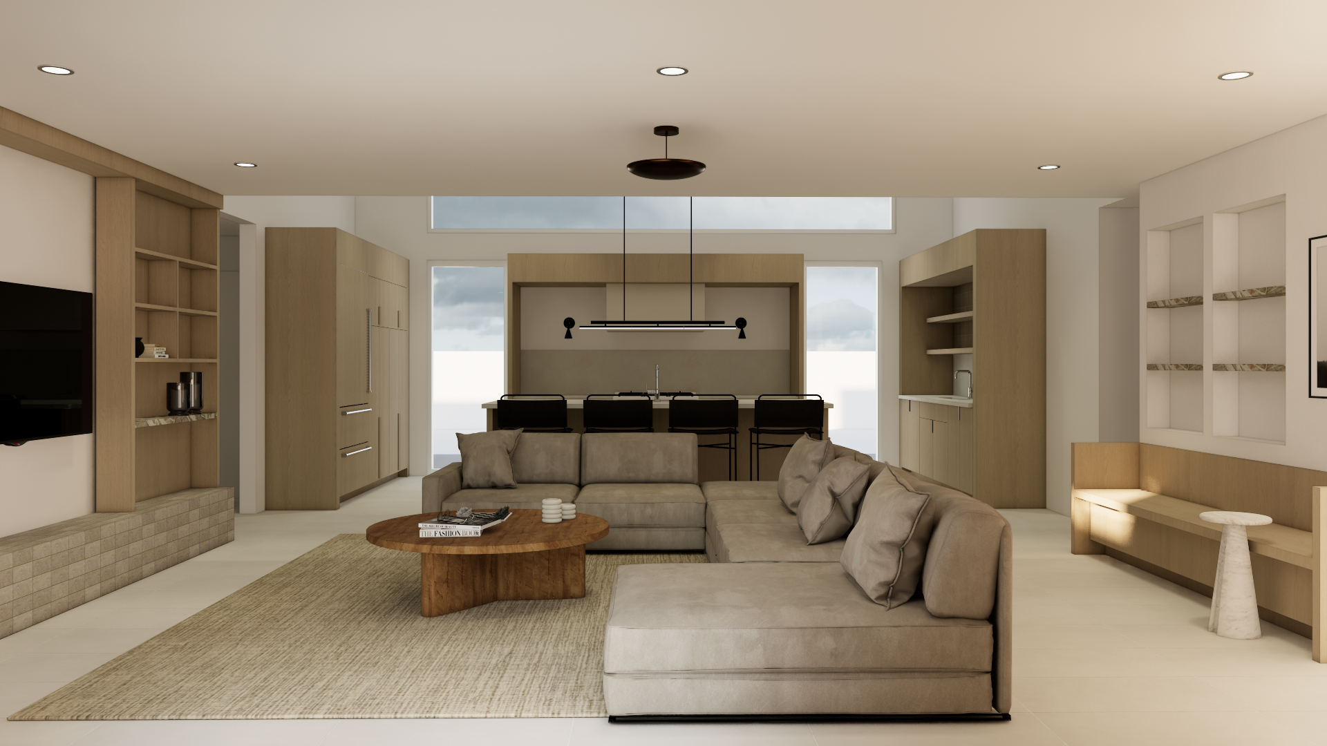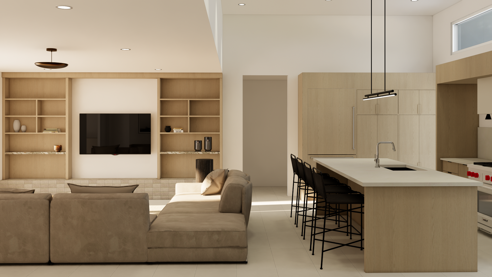 This sleek remodel was designed with a modern bachelor in mind, blending warm wood tones, clean lines, and bold black accents. An open-concept layout, clerestory windows, and custom millwork create a refined yet comfortable space perfect for contemporary living.
